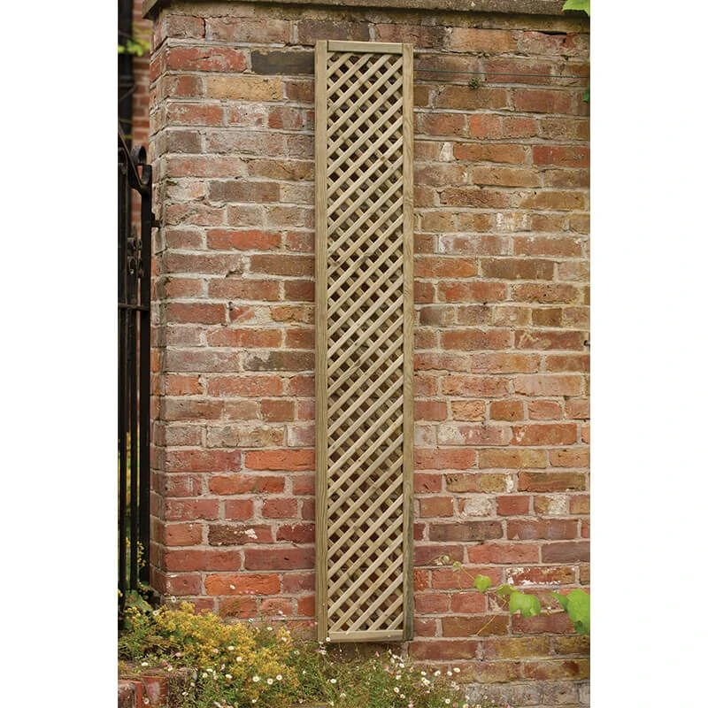 Manufactured from pressure–treated timber which carries a 15–year guarantee against rot, this attractive, functional design of lattice trellis can become a long–term garden fixture which has a smooth finish. The 180cm (6ft) height works well as a garden screen, while this particular size looks great as a slim decorative piece mounted to a garden wall.