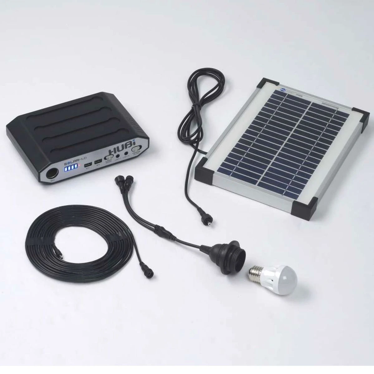 This outstanding super bright 300 lumen LED lighting system comes in two sizes: Hubi Work 16 covers 4m x 4m, Hubi Work 32 covers 8m x 4m. But this awesome lighting system does not stop there – the solar panel connects to the hub via a 2.5m cable, a 5m cable then runs to the light – its clever daisy chain function allows extra LEDs or lights to be added with expansions packs making the possibilities endless! If you need to cover a larger area, you can simply buy expansion packs as you require. The high efficiency crystalline solar panel and advanced lithium battery hub will give you lighting/energy for up to 2 – 7 hours every day depending upon the time of year. A battery level indicator on the front of the unit ensures you know exactly how much energy you have left.