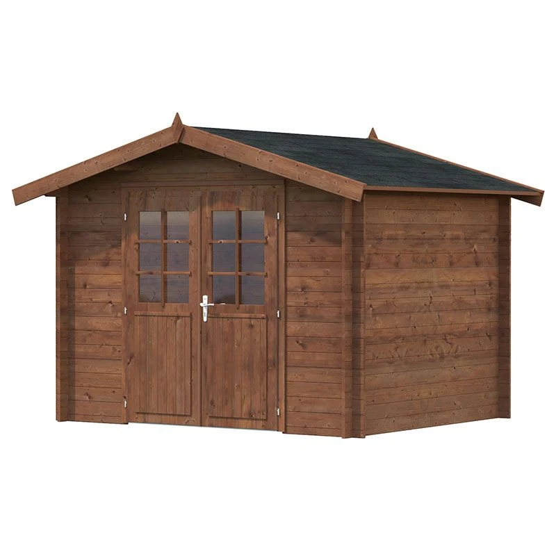 This Palmako log cabin comes with installation instructions and a fixings kit. Together with the chalet-cut wooden boards, which simply slide together, this should help you achieve a straightforward assembly.