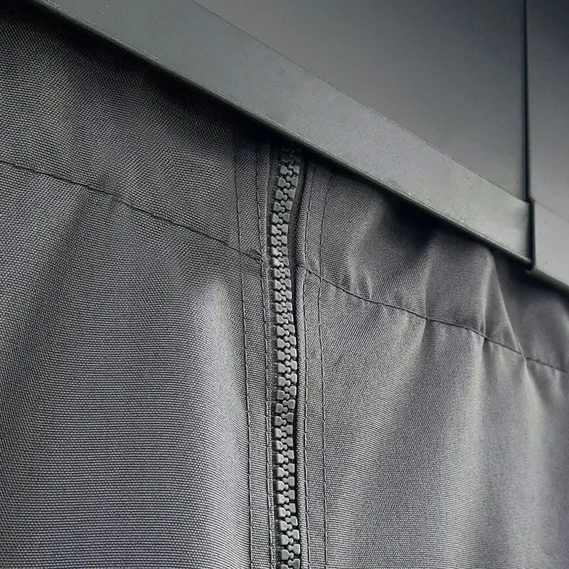 - Zips connect the curtains together