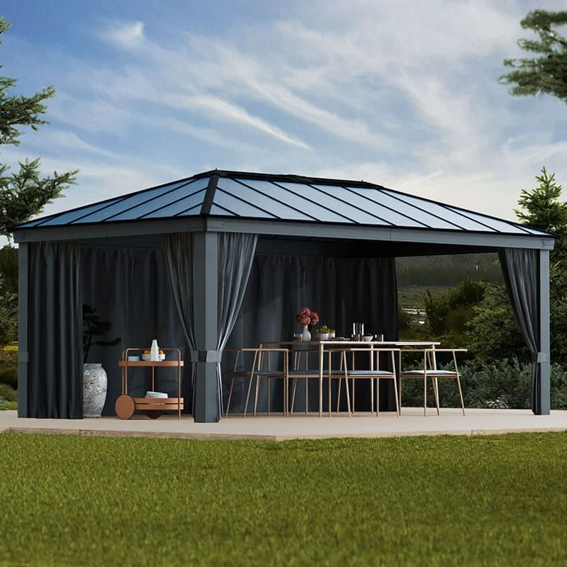 - Hooks attach to the gazebo’s track line