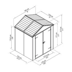 6′ X 5′ Palram Canopia Rubicon Double Door Plastic Garden Shed – Dark Grey (1.85m X 1.53m)